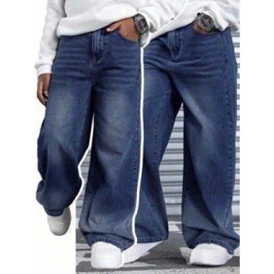SHEIN Teen Boy Fashion Casual Vintage Designed Wash Water Blue Loose Straight Leg Jeans, Thanksgiving Costume Dailywear And Fall/Winter