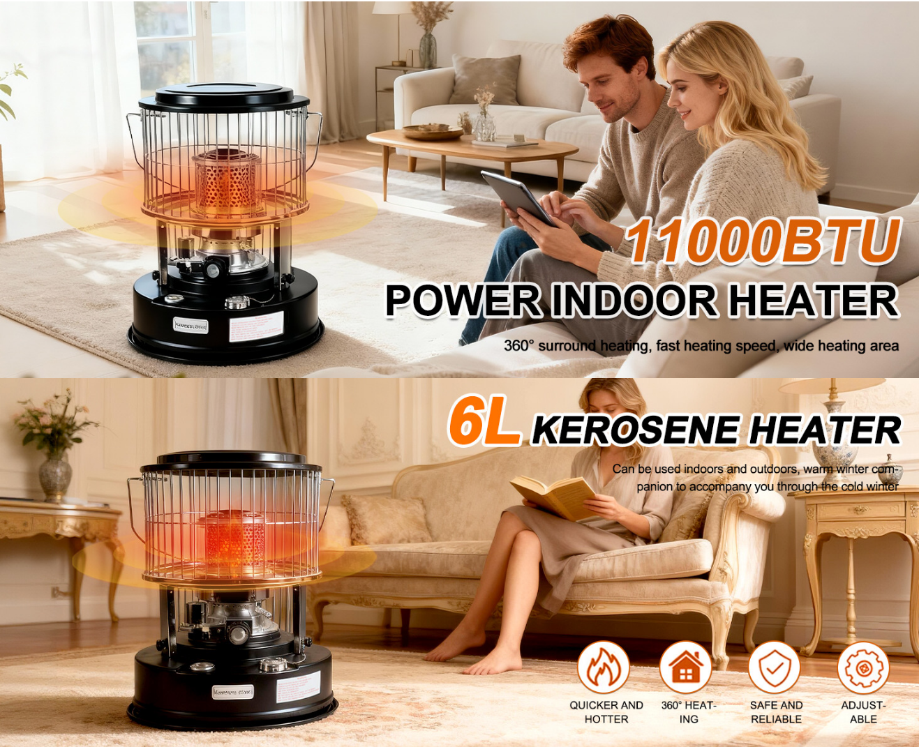 3500W Portable Inverter Generator Petrol, 4-Stroke 149cc Quiet Power Station, Pure Sine Wave Generator with 6L