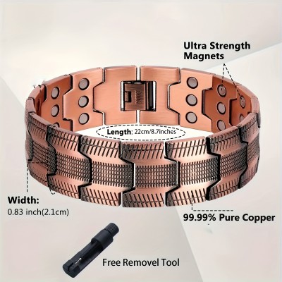 1 Pure Copper Magnetic Bracelet with 3 Rows of Neodymium Magnets, Adjustable Length, Best Gift for Boyfriend or Father